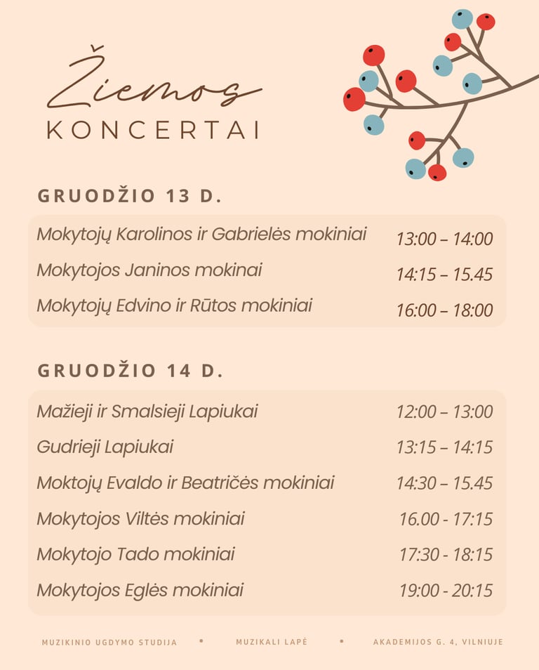Mielieji, kaip ir kasmet, artėjant Kalėdoms, kviečiame jus į šiltus ir jaukius kalėdinius koncertus. Susitikime pasidalinti muzika, kūryba ir Kalėdų stebuklu.