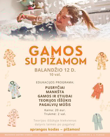 Visus mūsų mokinius, norinčius techniškai tobulėti bei augti kartu su muziką mylinčia bendruomene, kviečiame dalyvauti mokinių edukacijoje „Gamos su pižamom“.